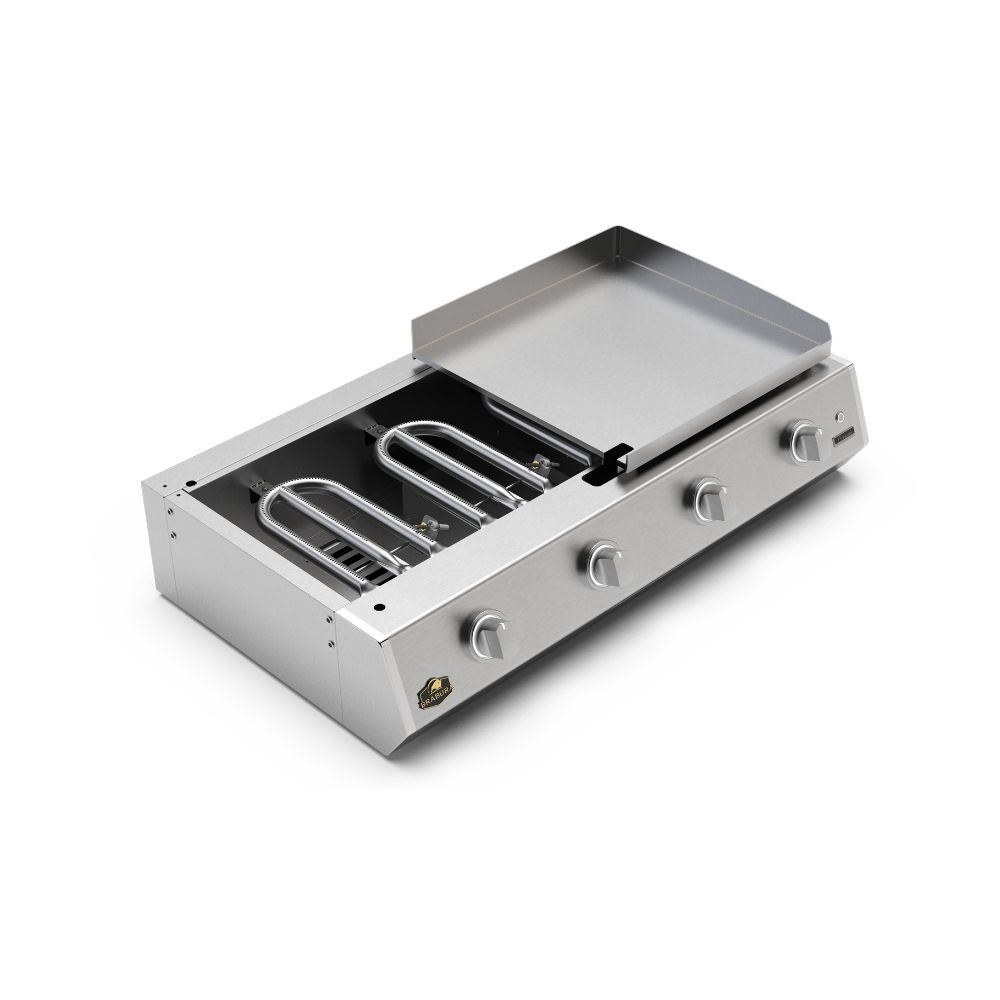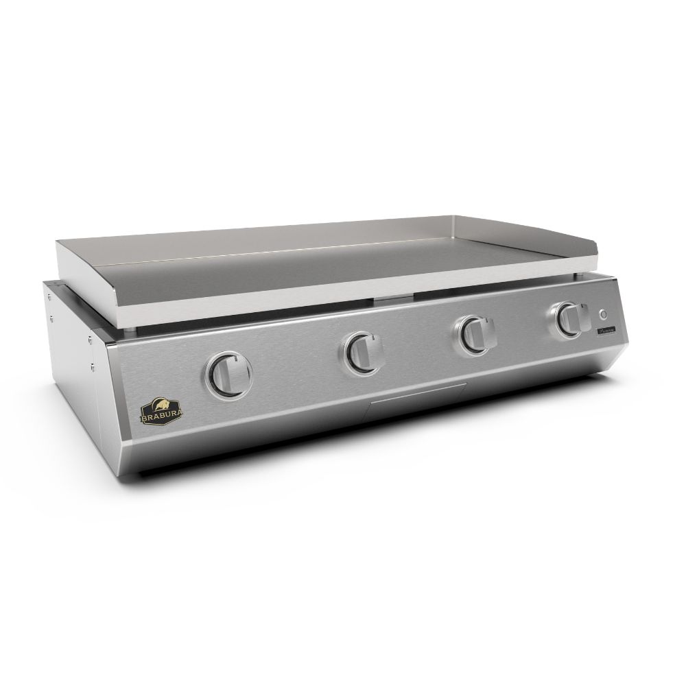 Elevate your outdoor kitchen with the Brabura Inox 40, a Plancha-style grill that brings the expertise of professional chefs to your backyard. Built to last a lifetime, it combines the luxury of high-grade stainless steel with the unmatched performance of four powerful burners.