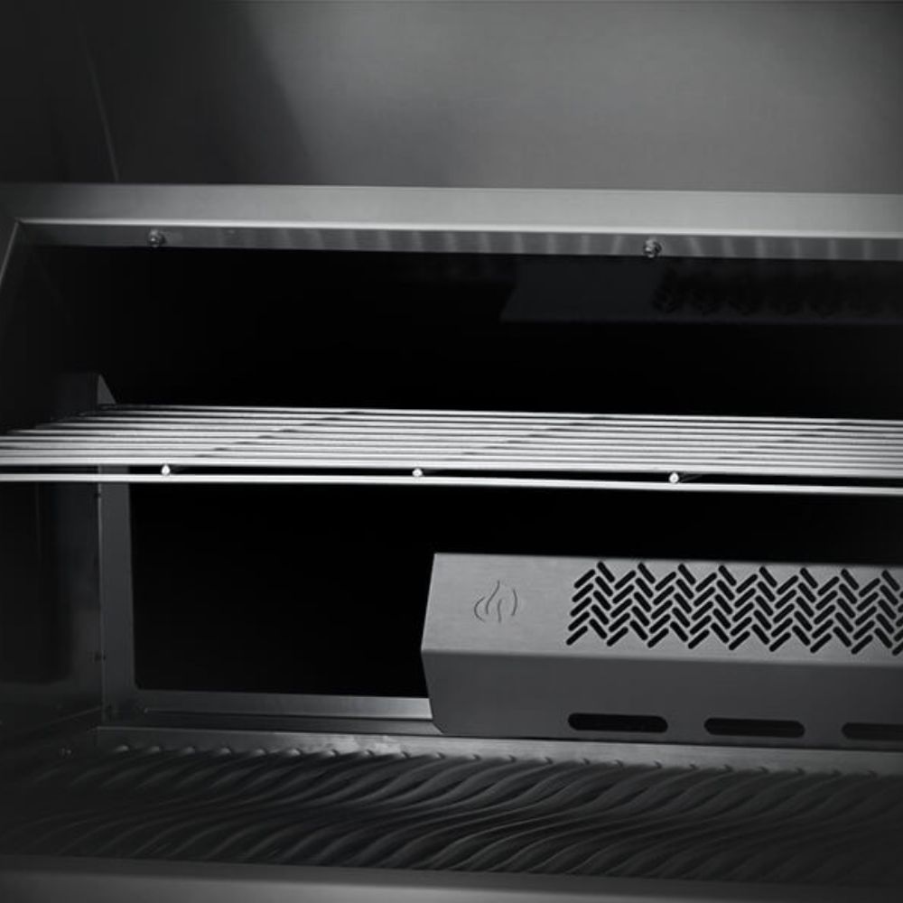 Dual-Level Stainless Steel Sear Plates: These plates protect the burners and are perfectly positioned on two levels to ensure consistent heat across the entire cooking chamber. Their angled placement provides the same high temperature at both the front and back of the grill.
