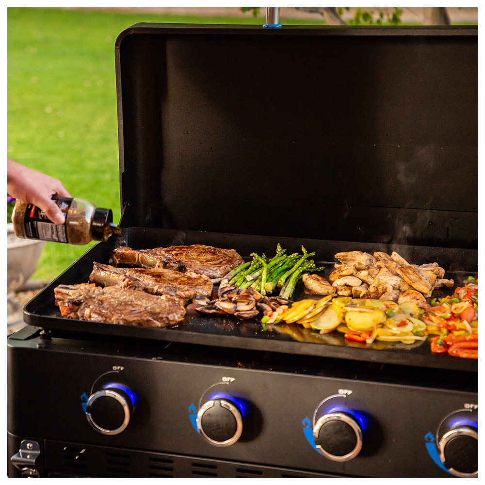 The Ultimate Griddle features a robust 5-burner heating platform, making it the most powerful griddle Pit Boss has created to date. Offering 647 square inches of cooking surface, this griddle is the perfect fit for whatever your cooking needs may be. These units are aesthetically qualified to be the centerpiece of your backyard cooking arrangement, and versatile enough to be the go-to cooking option for breakfast, lunch and dinner. As practical as it is inventive, this line of griddles is our most versatile product to date.