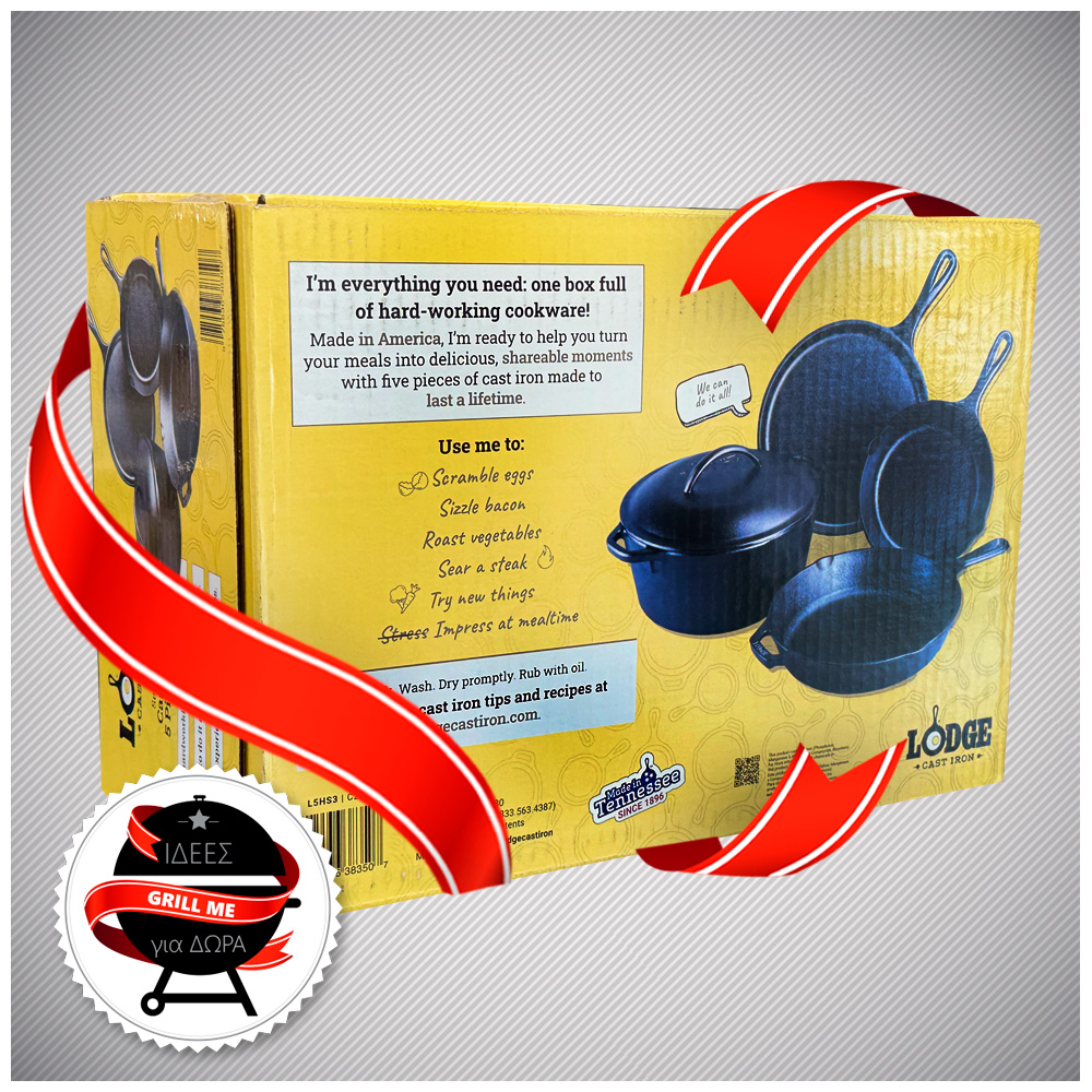 The Lodge Cast Iron 5 Piece Set is a cast iron set of optimum quality. It is Made in USA by the factory Lodge. Using it you will transform any recipe in a magnificent meal. Be careful!!! Anyone taste once, never eats food cooked everywhere else!!