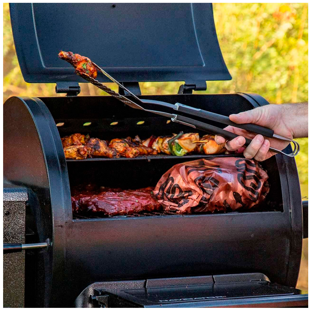 Man the grill with ease using the Pit Boss Pro Series All-In-One Tool. The innovative design features a stainless-steel spatula and tong combined. Butcher and tenderize meats with the dual-edged spatula. Then, effortlessly grip and flip everything from racks of ribs to whole briskets.